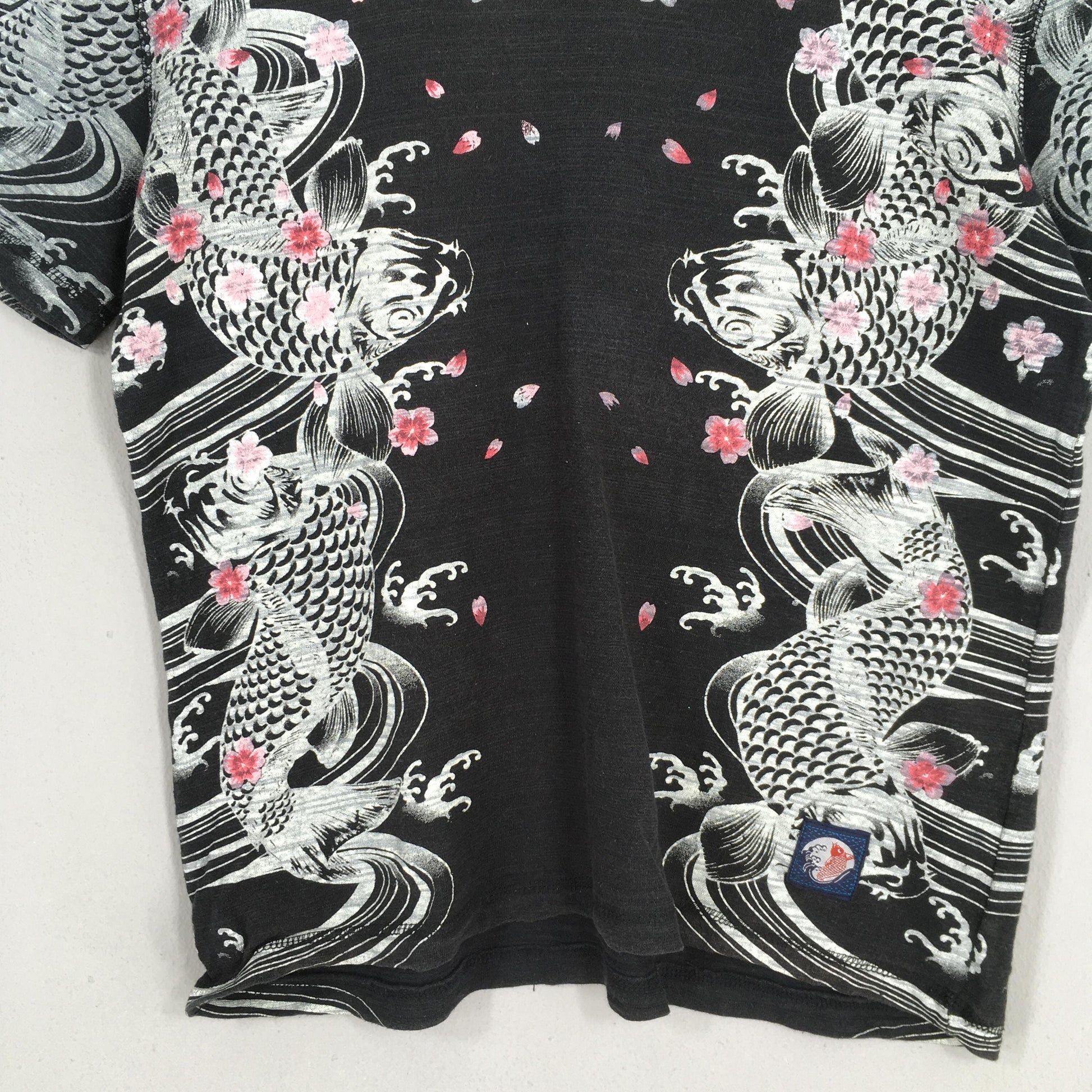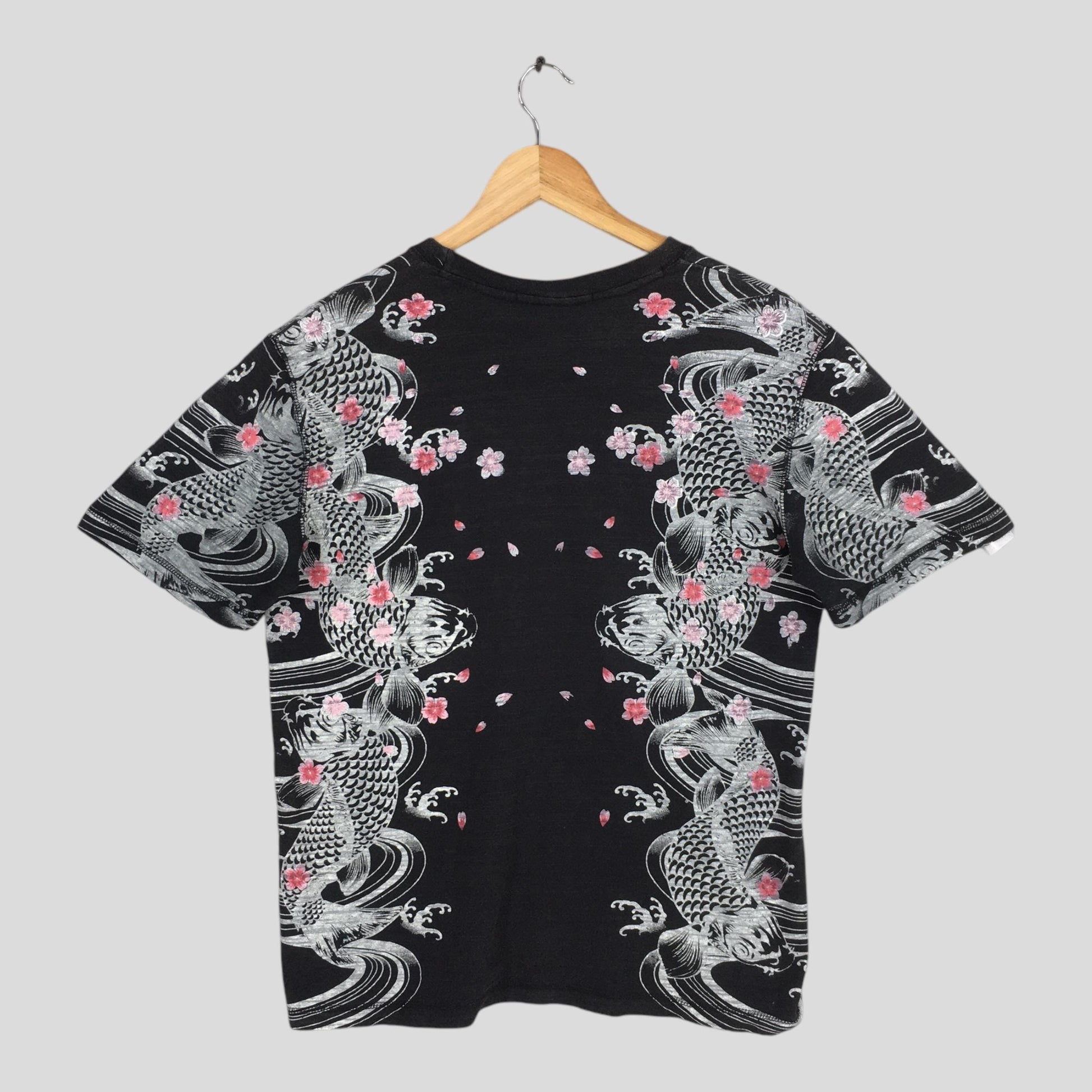 Vintage Fish Koi Japanese Culture Sukajan Black Tshirt Large Koi Pond All Over Print Japanese Culture Tattoo Style Souvenir Tee Size L