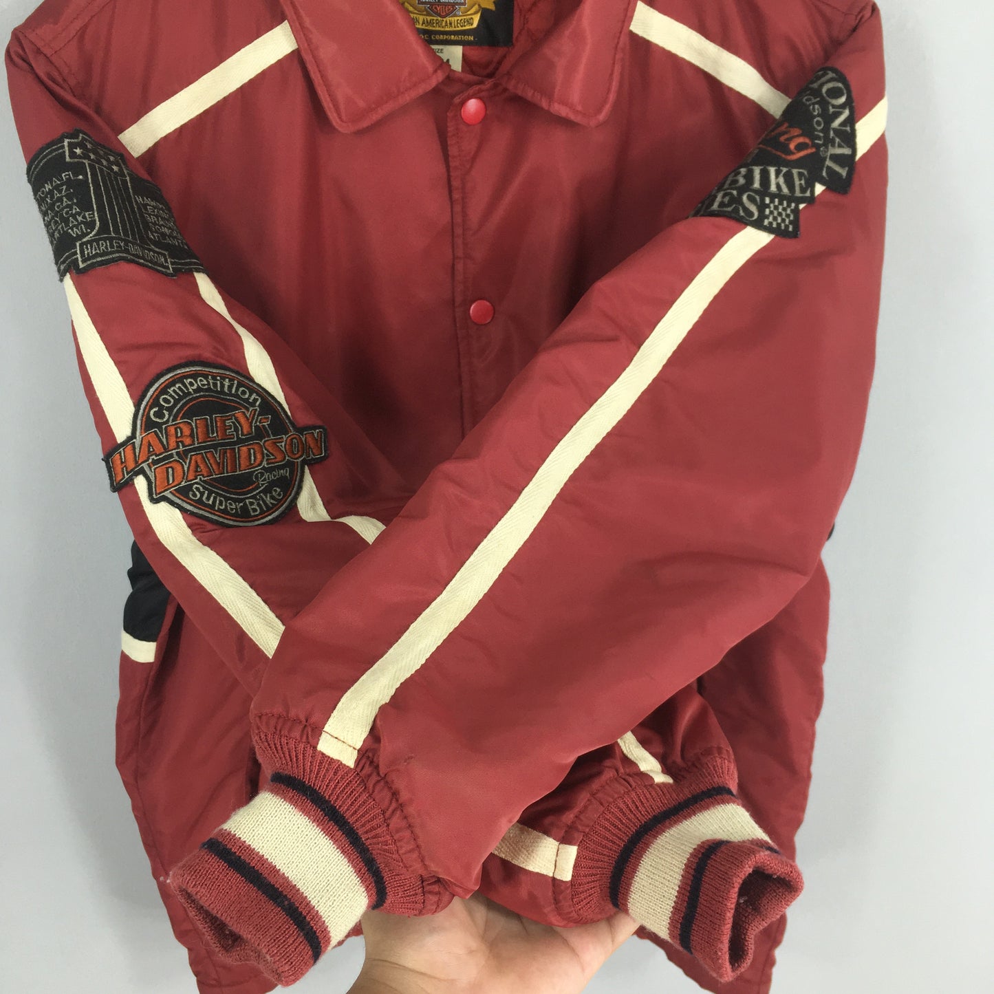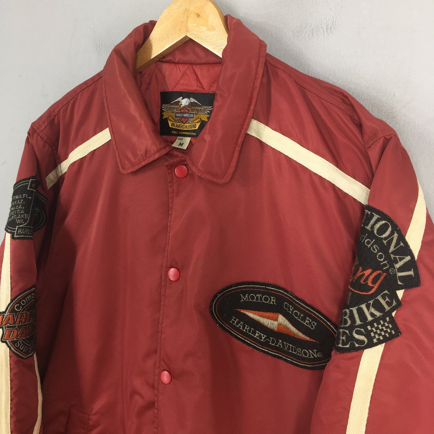 Vintage 90s Harley Davidson Motorcycles Button Red Jacket Medium Ama Nationa Superbike Harley Davidson Embroidered Harley Rider Coat Size M
