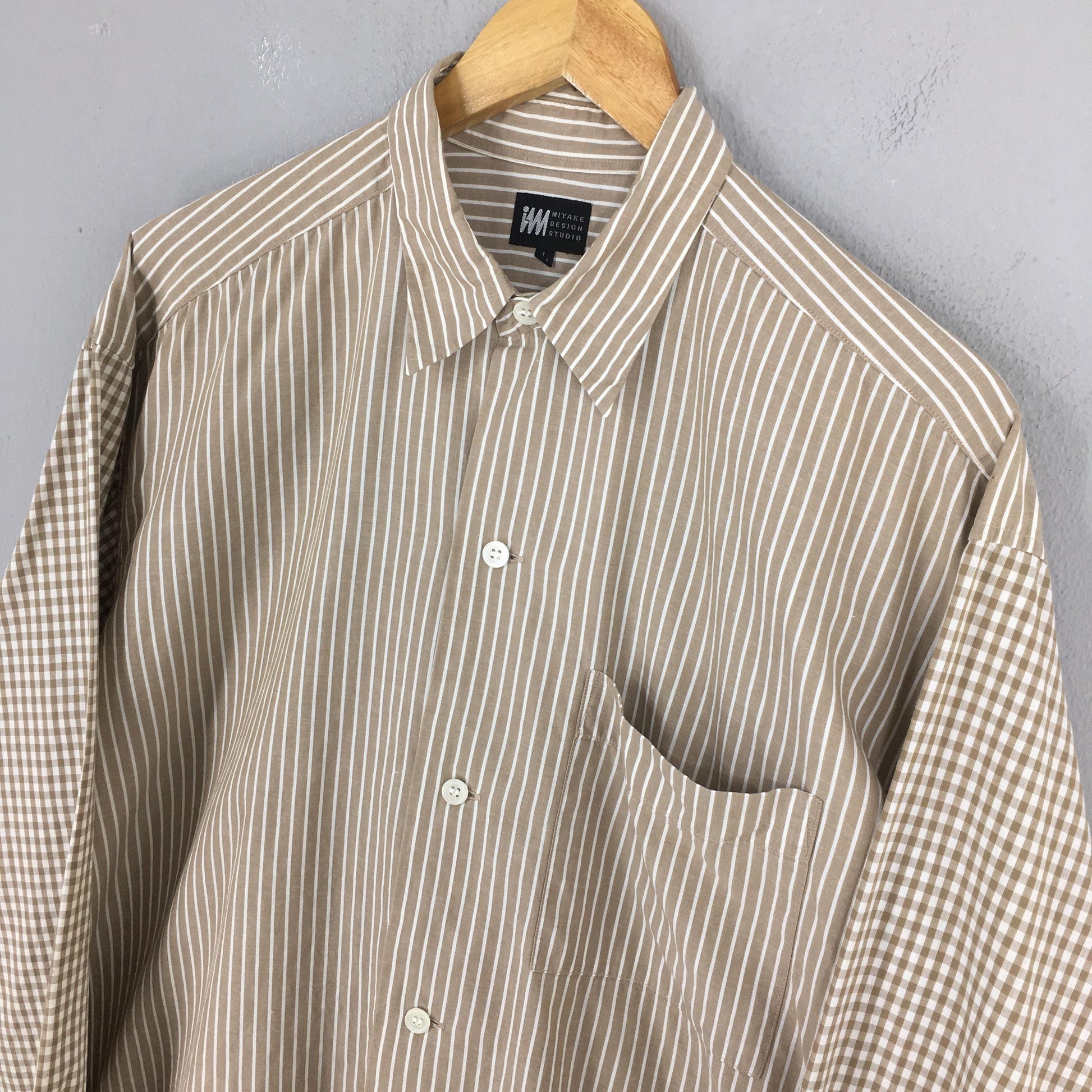 Vintage 90s Issey Miyake Brown Stripes Shirt Large IM Product Japan Designer Issey Miyake Casual Oxfords Button Down Striped Long Sleeve L