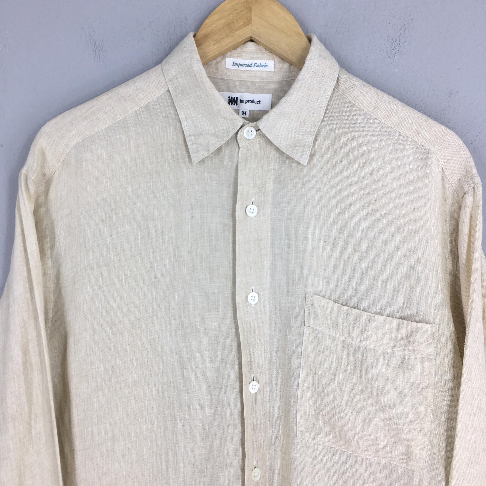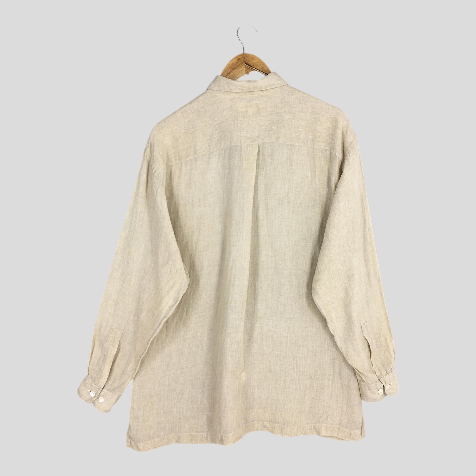 Vintage 90s Issey Miyake Design Studio Beige Linen Shirt Medium IM Product Japan Designer Issey Miyake Long Sleeve Casual Button Oxfords M