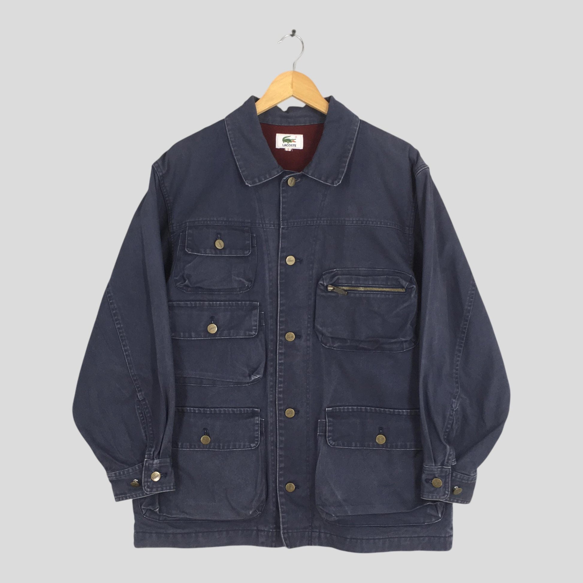 Vintage 90s Lacoste Denim Workers Jacket Large Lacoste Multipocket Tactical Workwear Outerwear Lacoste Frenchwork Jacket Menswear Coat L