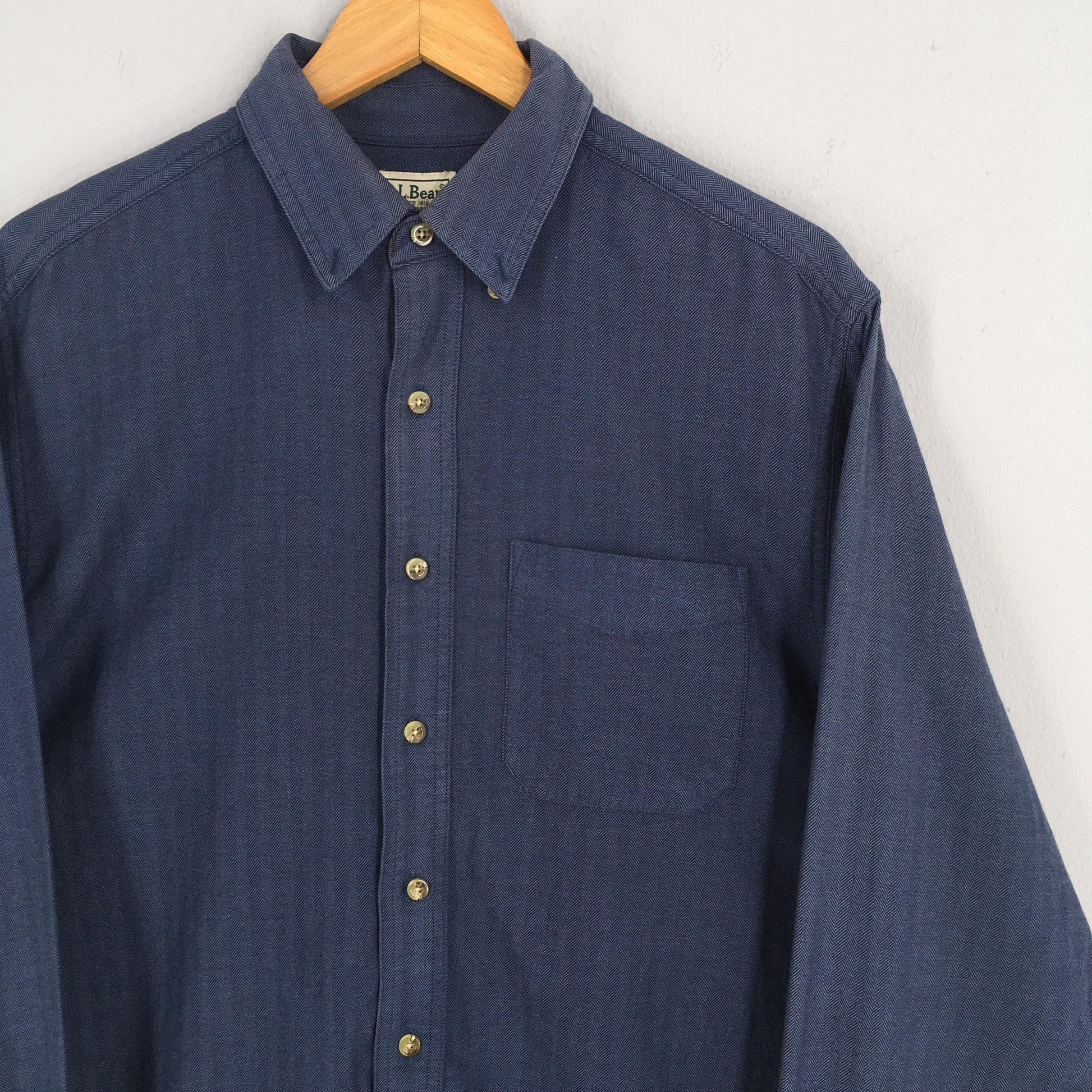 Vintage 90's LL Bean Blue Striped Flannel Shirt Medium LL Bean Usa Herringbone HBT Flannel Ll Bean Button Down Oxfords Work Shirt Size M