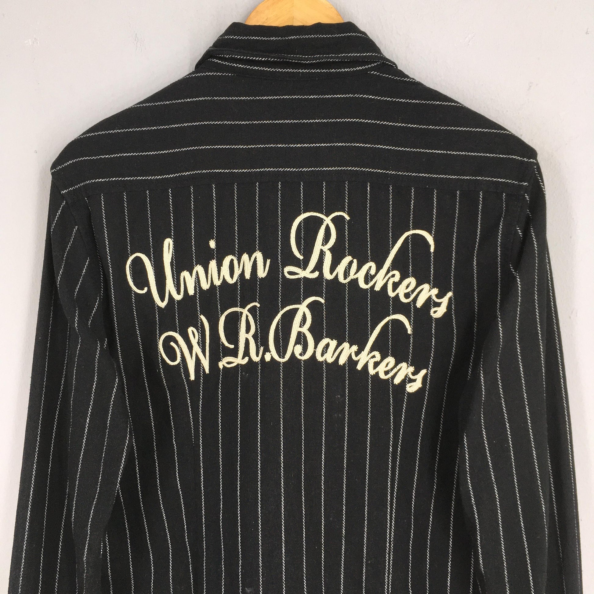 Vintage Luv Maison Black Wabash Stripes Shirt Small Union Rockers Embroidery Cat Eye Buttons Flannel Retro Rockabilly Wear Shirt Size S