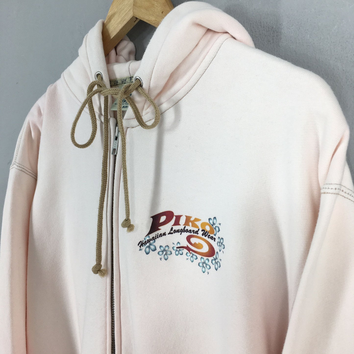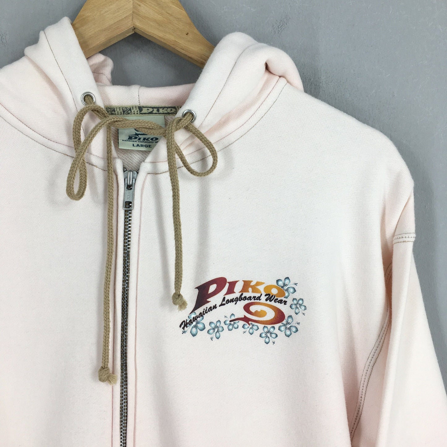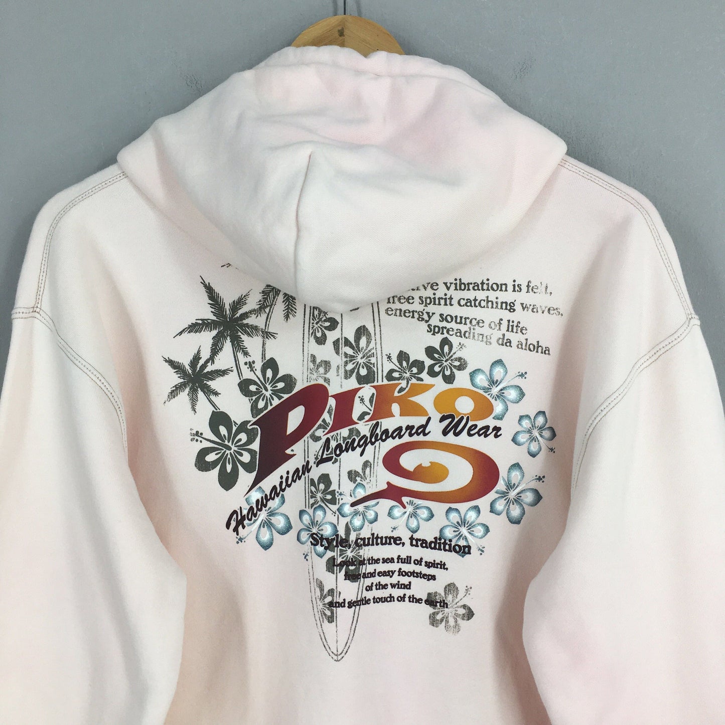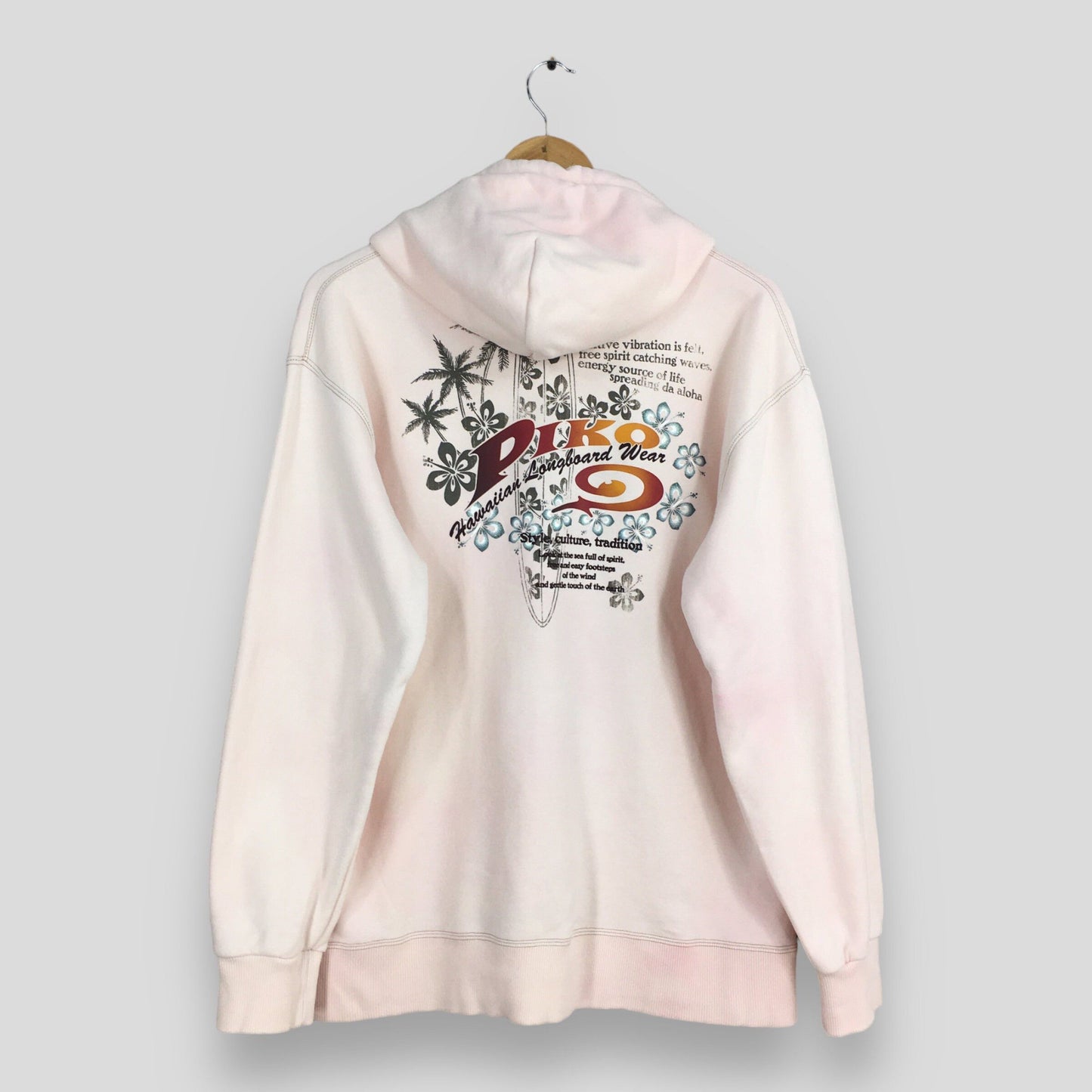Vintage 90's Piko Surf Soft Pink Sweatshirt Hoodie Large Piko Logo Printed Sweater Pipeline Piko Surfer Beach Pullover Piko Jumper Size L