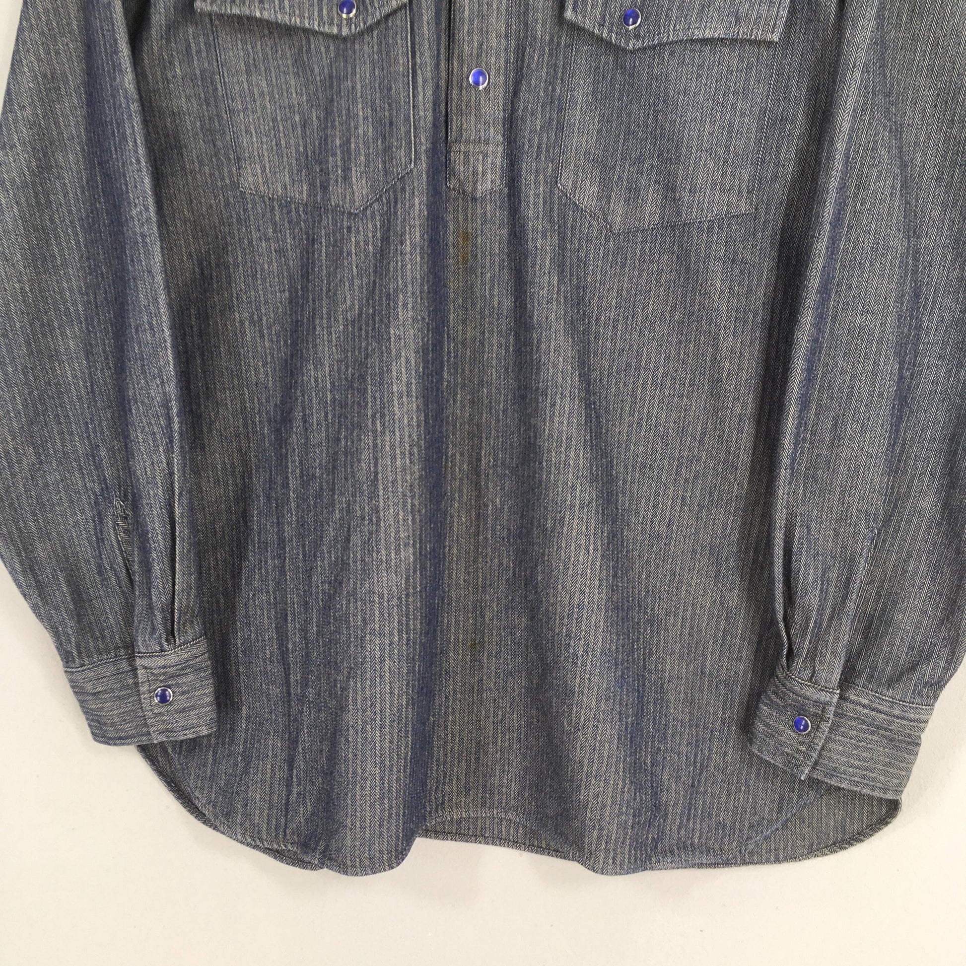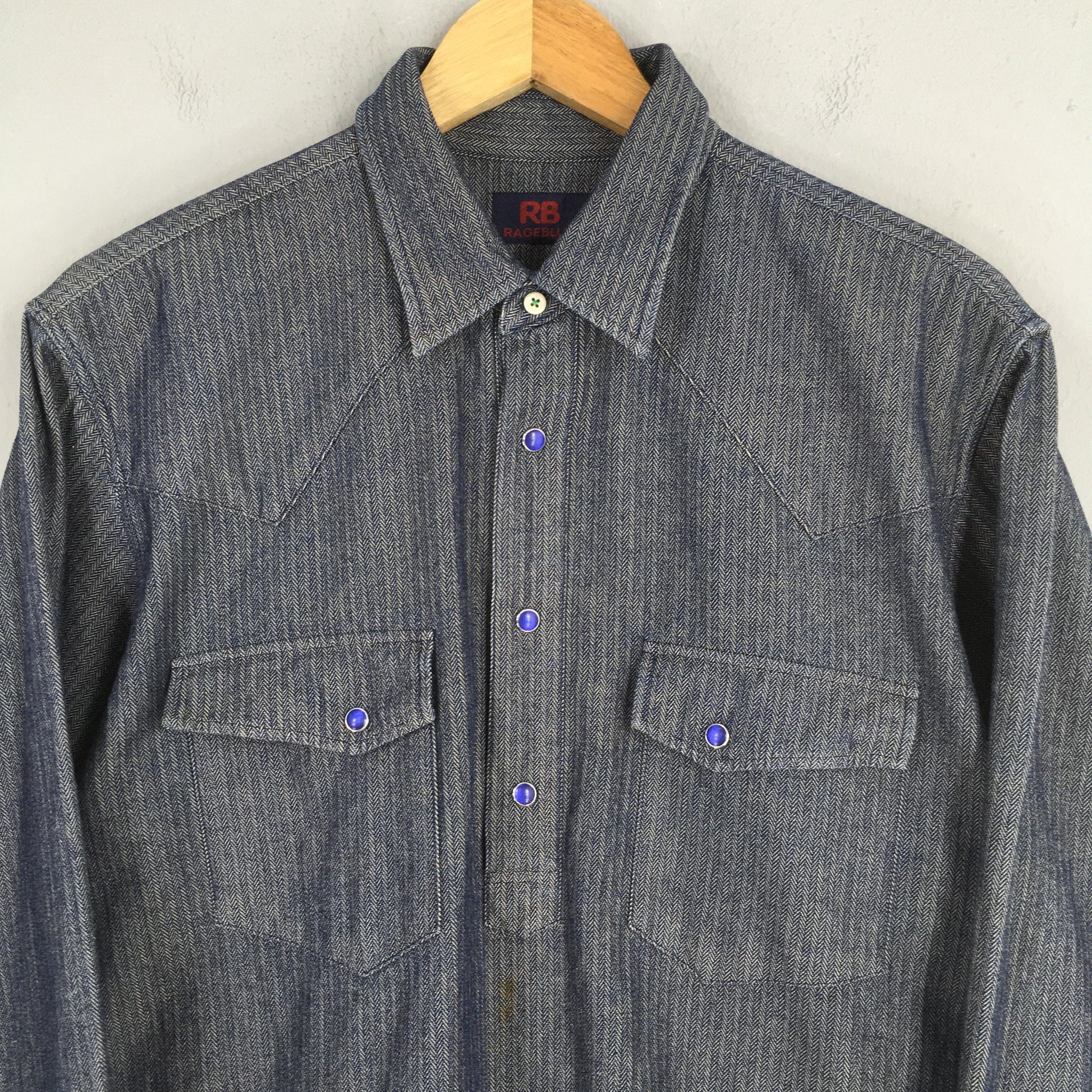 Vintage Rageblue Herringbone HBT Western Shirt Medium Rageblue American Rodeo Cowboy Pearl Snap On Button Shirt Pullover Denim Shirt Size M