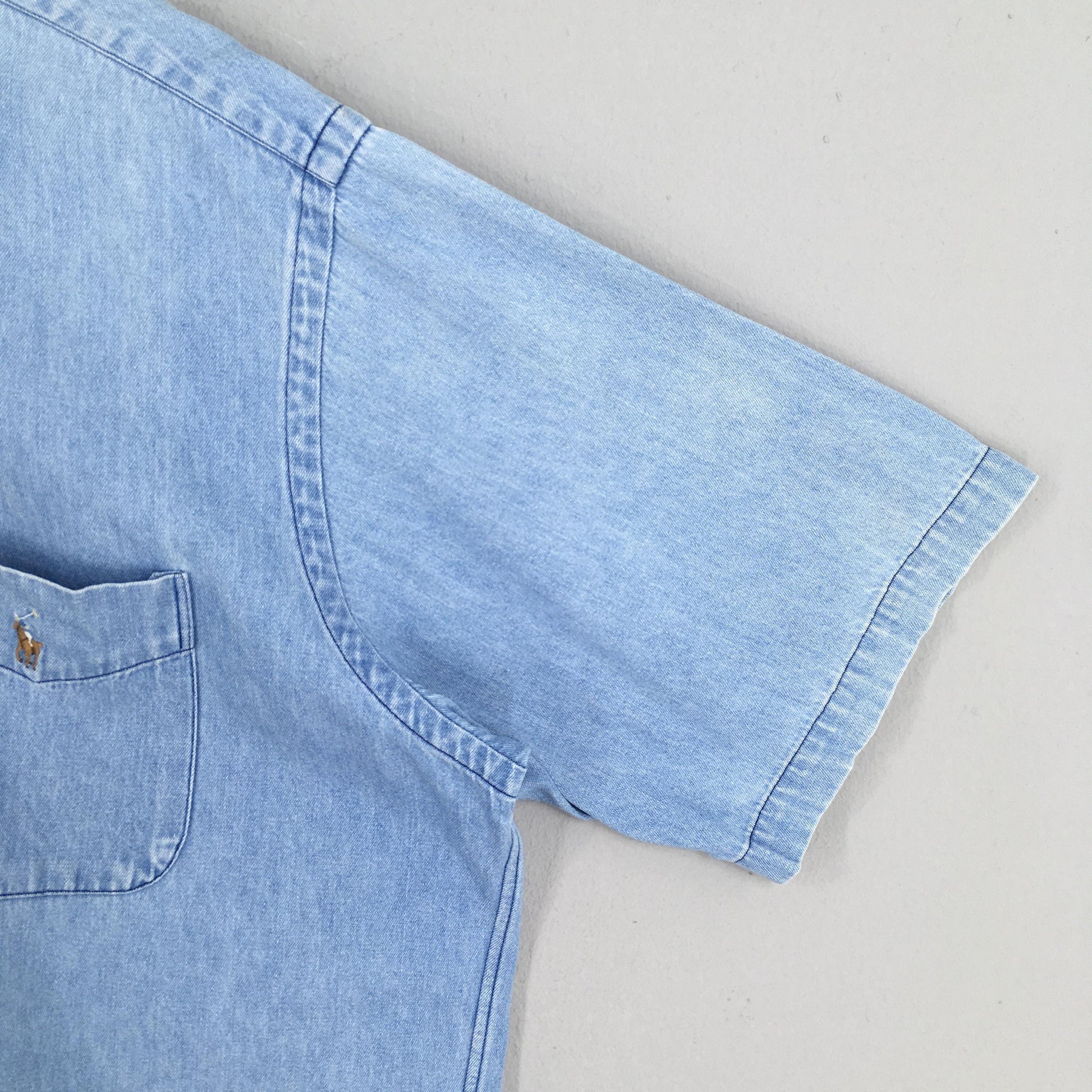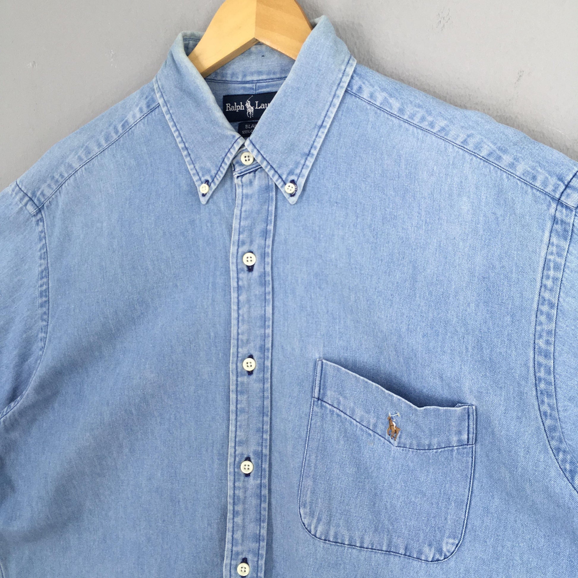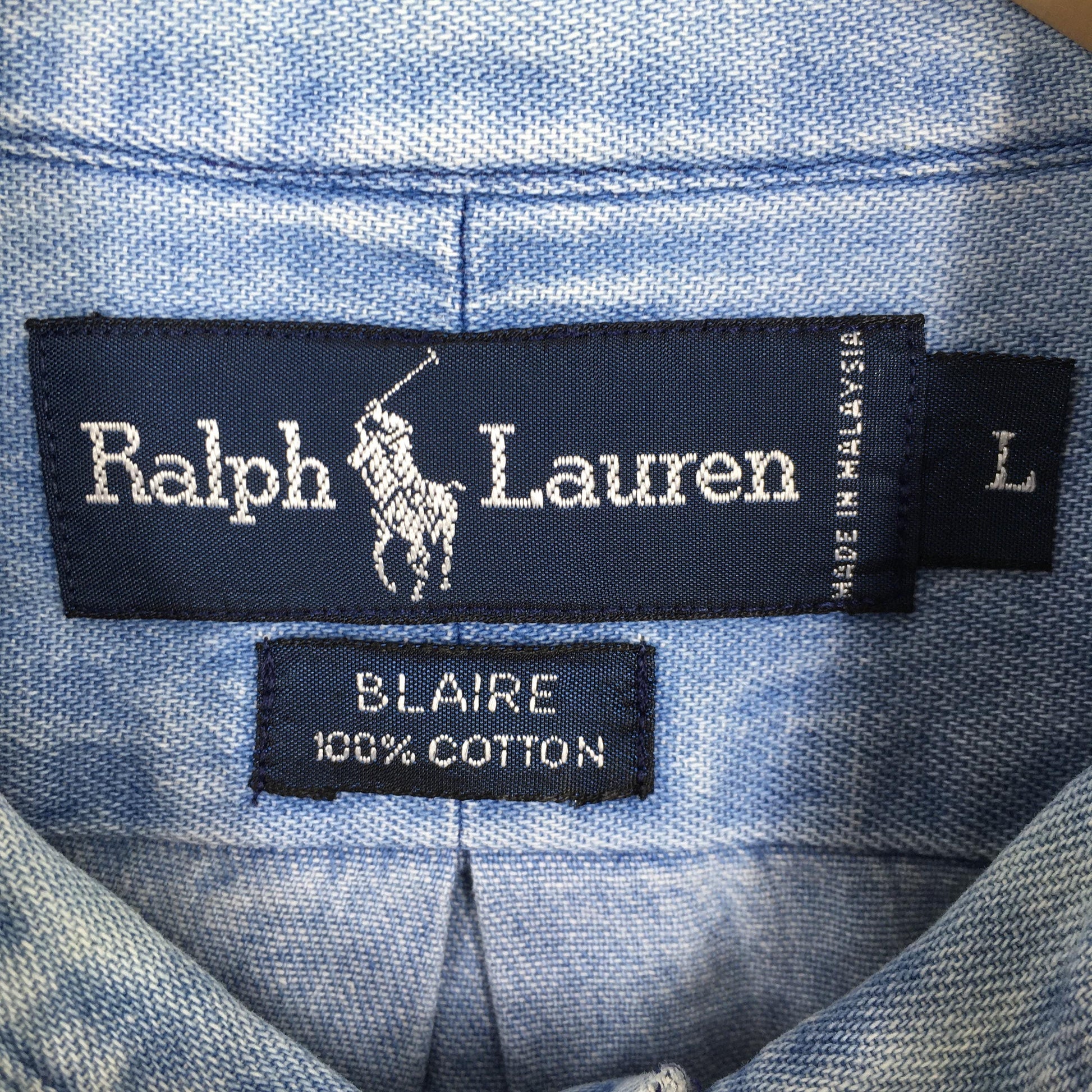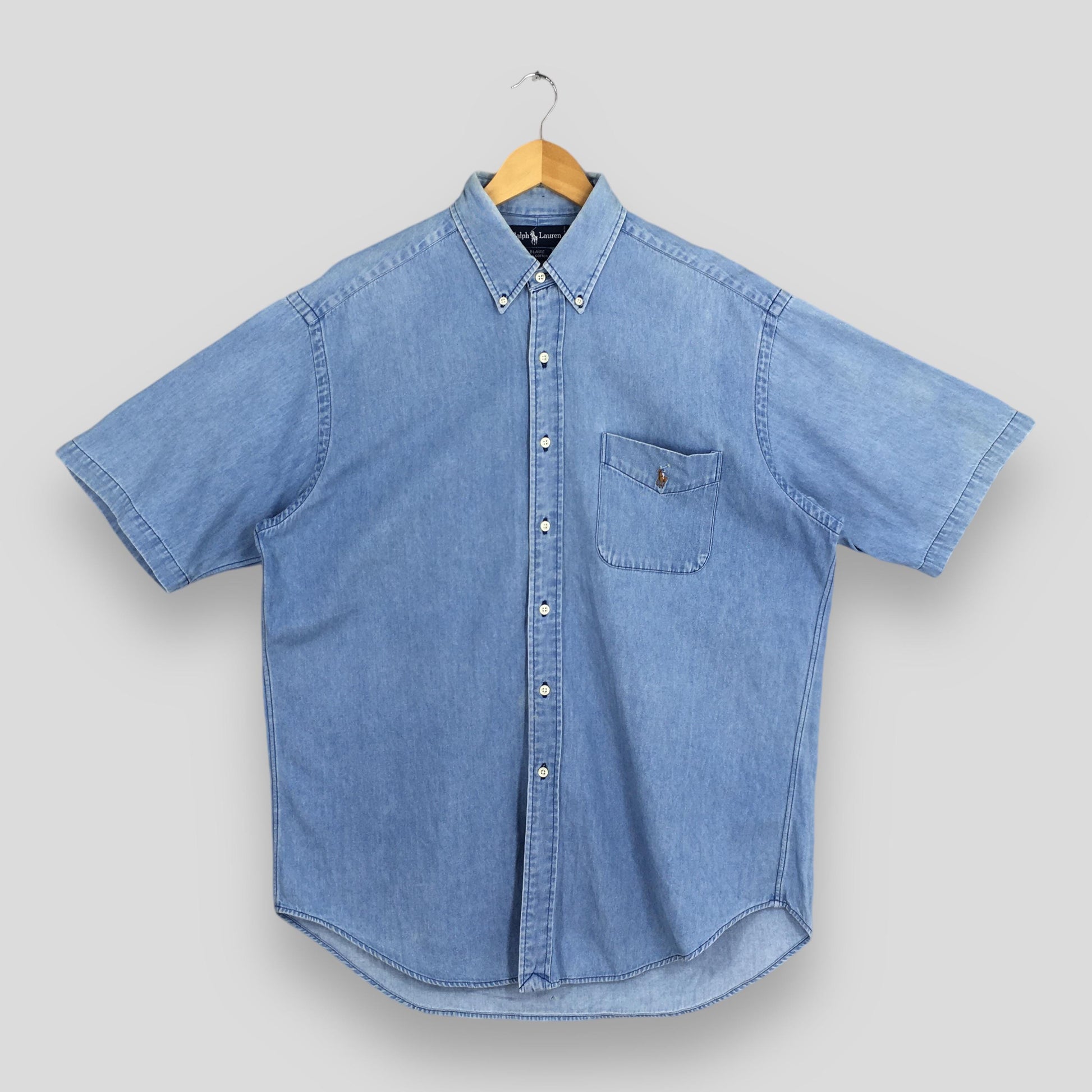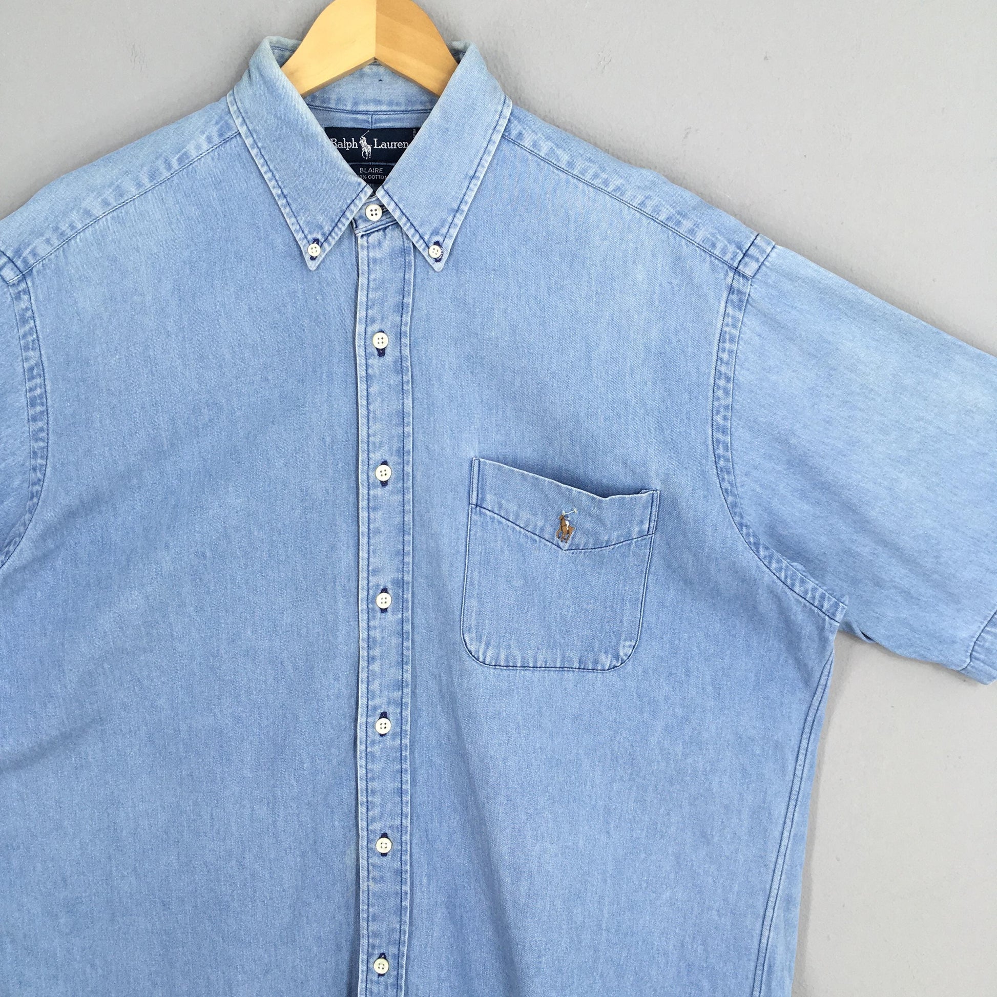 Vintage Ralph Lauren Blue Blaire Button Up Shirt Large Polo Ralph Lauren Plain Formal Oxfords Polo Pony Short Sleeve Cotton Shirt Size L