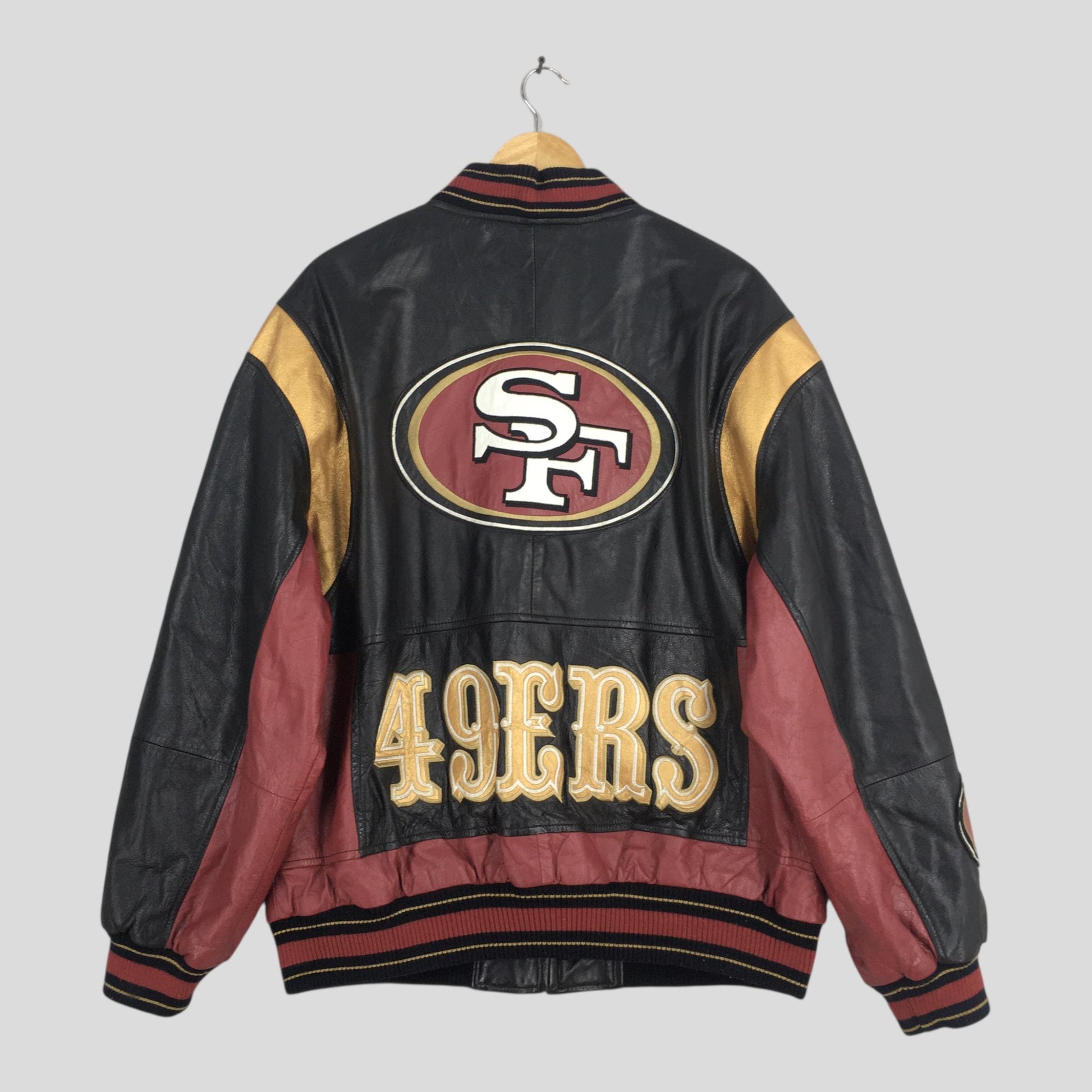 San Francisco 49ERS Red Black Bomber Leather Jacket Large