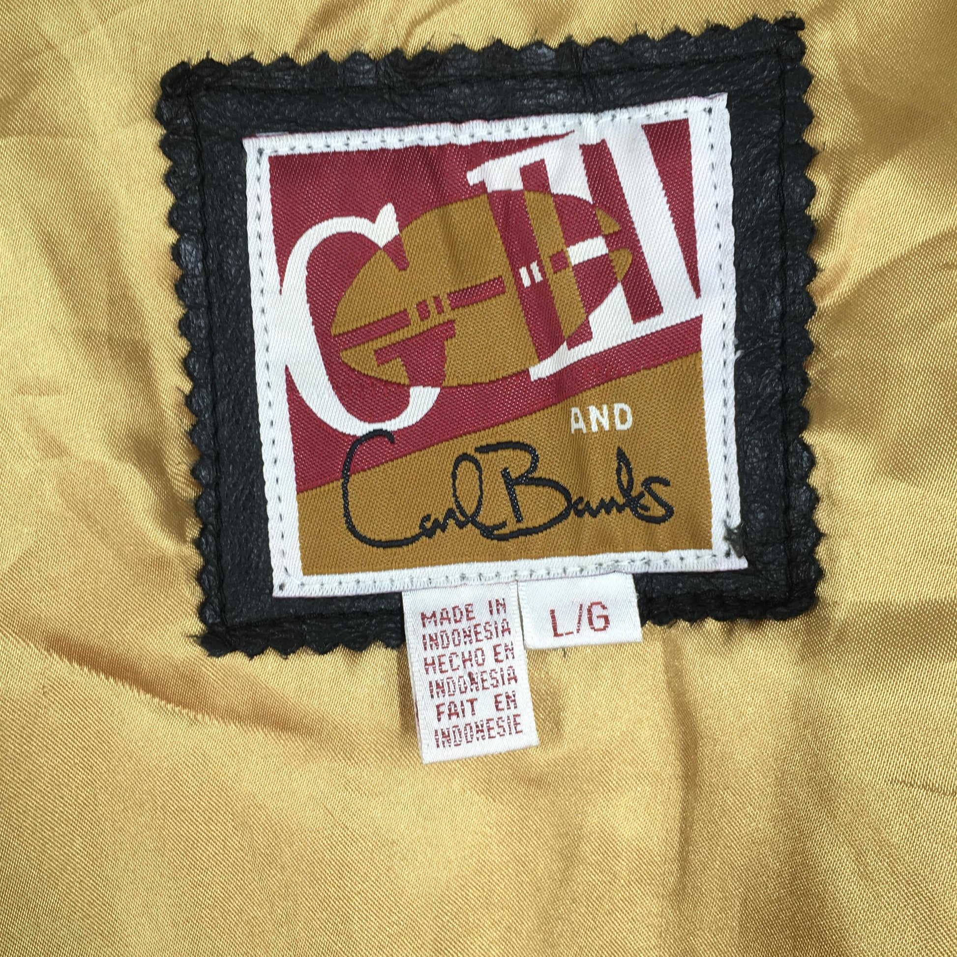 Vintage 90s San Francisco 49ERS Red Black Bomber Leather Jacket Large NFL Forty Niners Embroidered Football Varsity Carl Banks Jacket Size L
