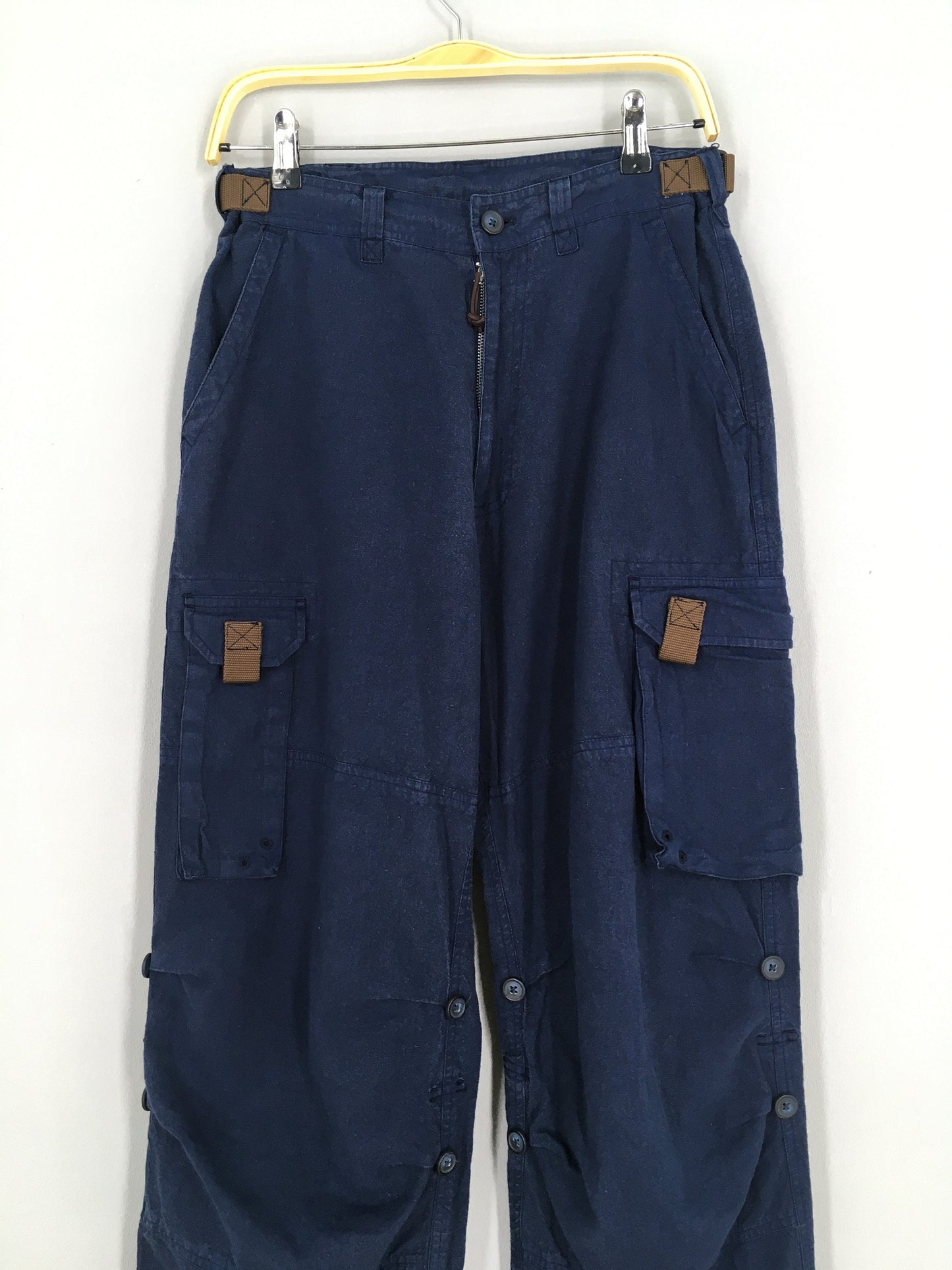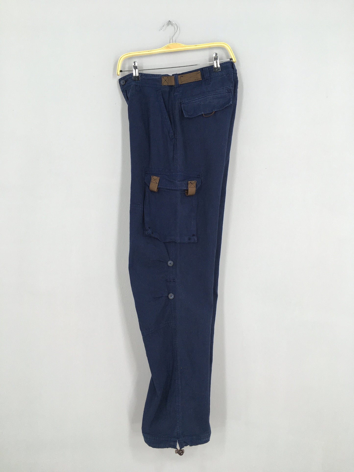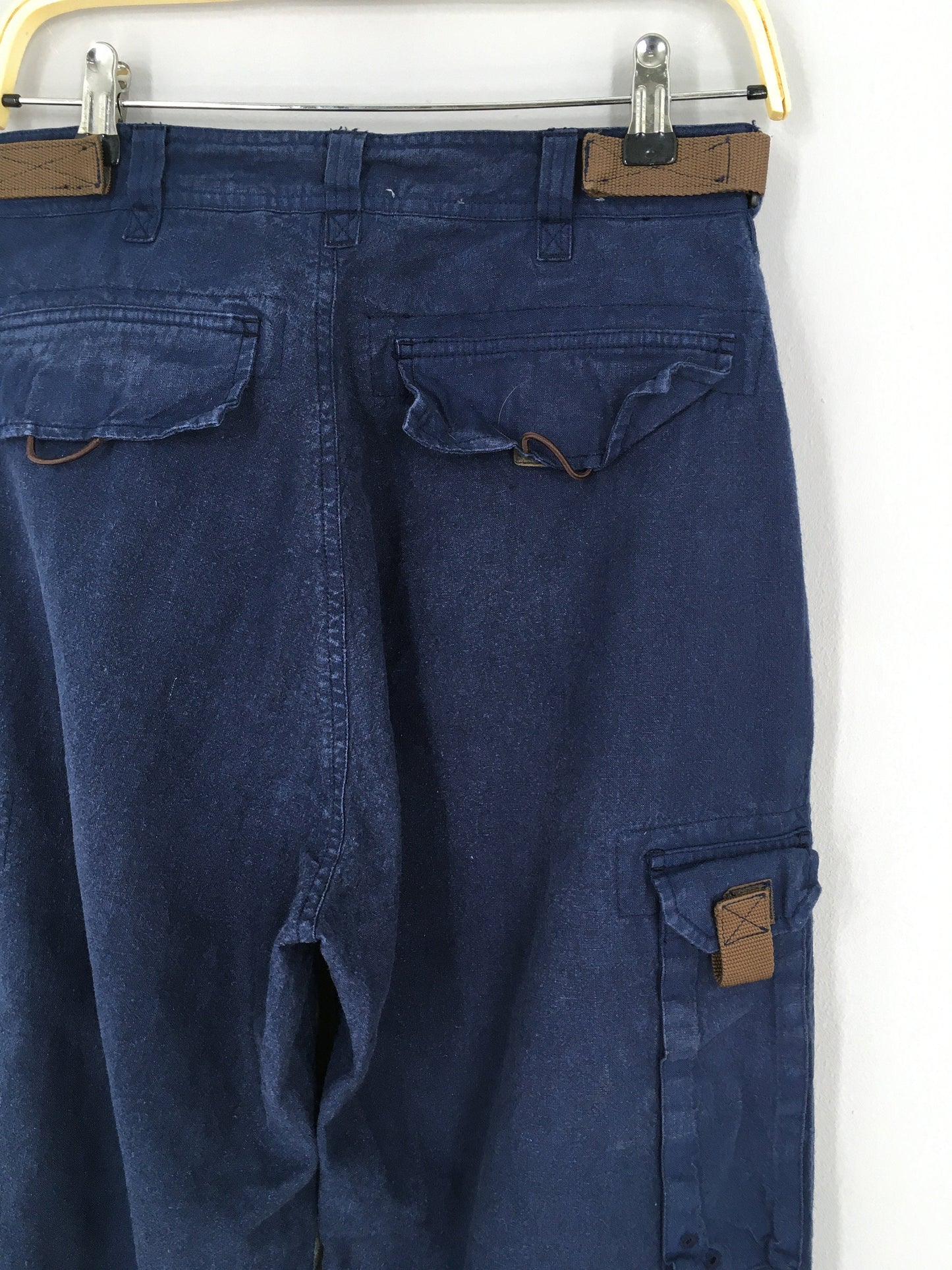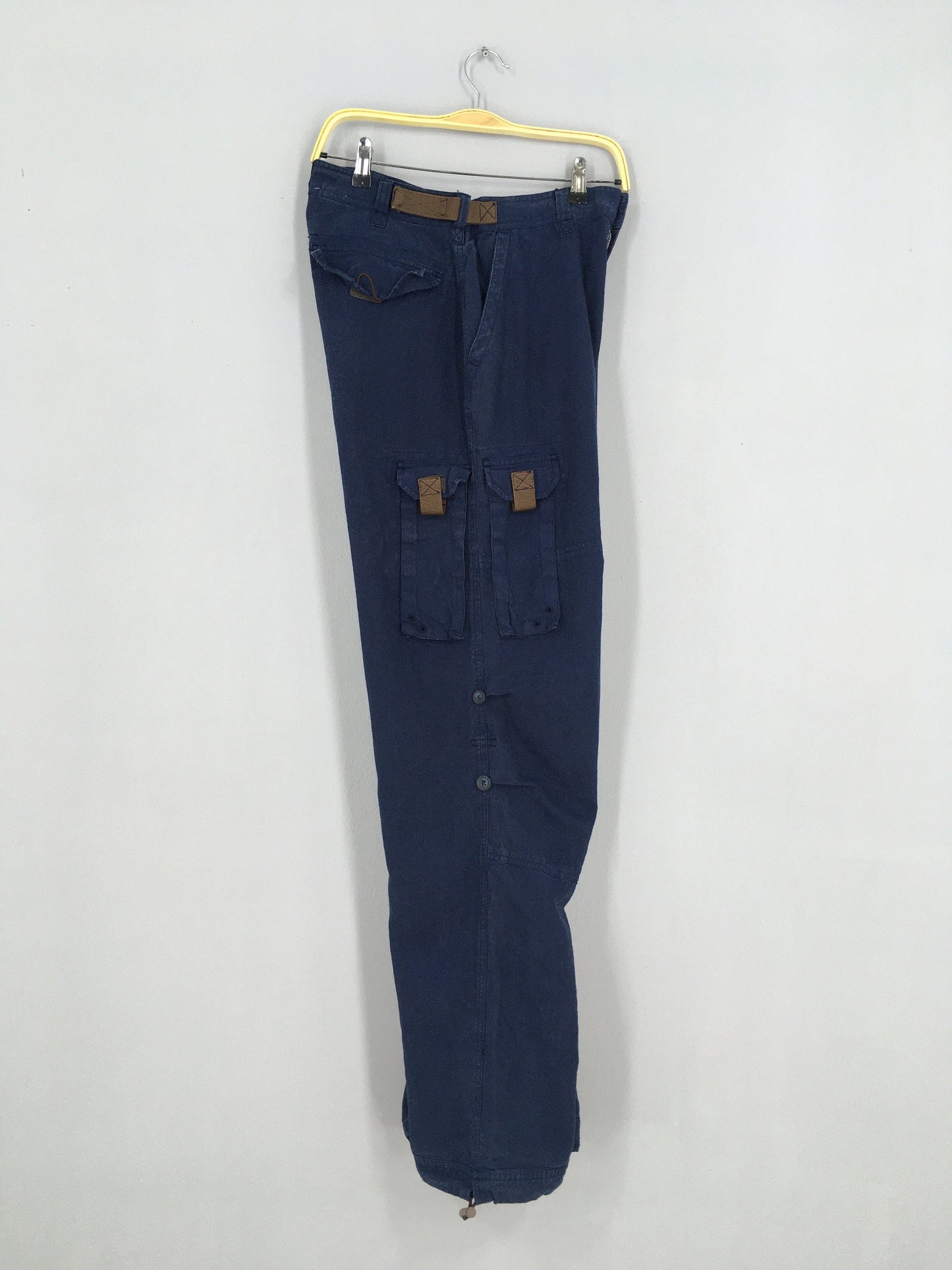 Size 28x32 GYS Japan Surplus Drawstring Hem Cargo Pants Blue Straight Cut Pants Multi Pocket Utility Military Monkey Tactical Pant W28