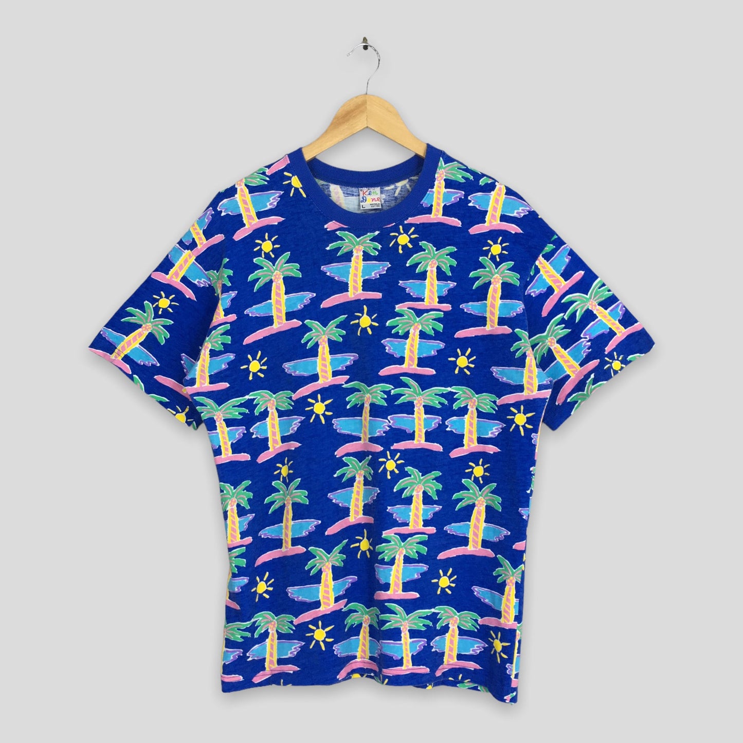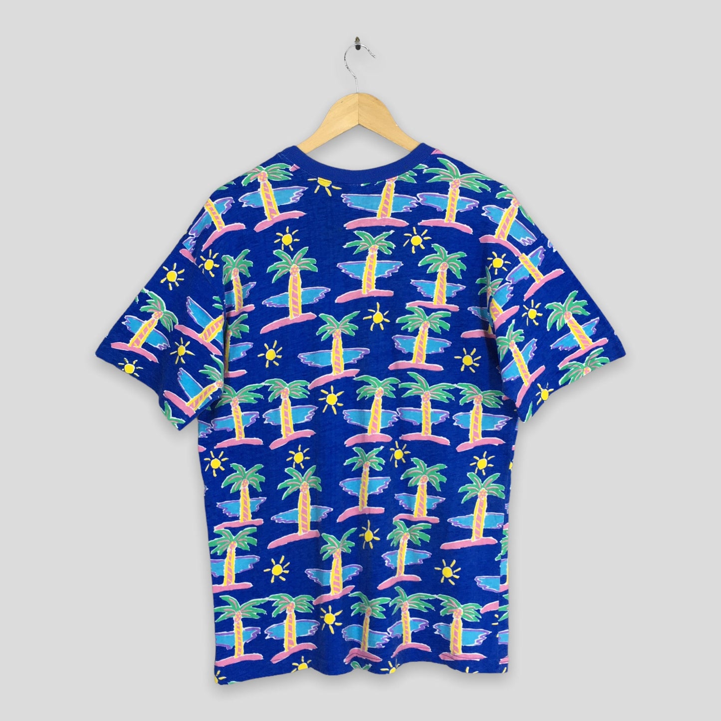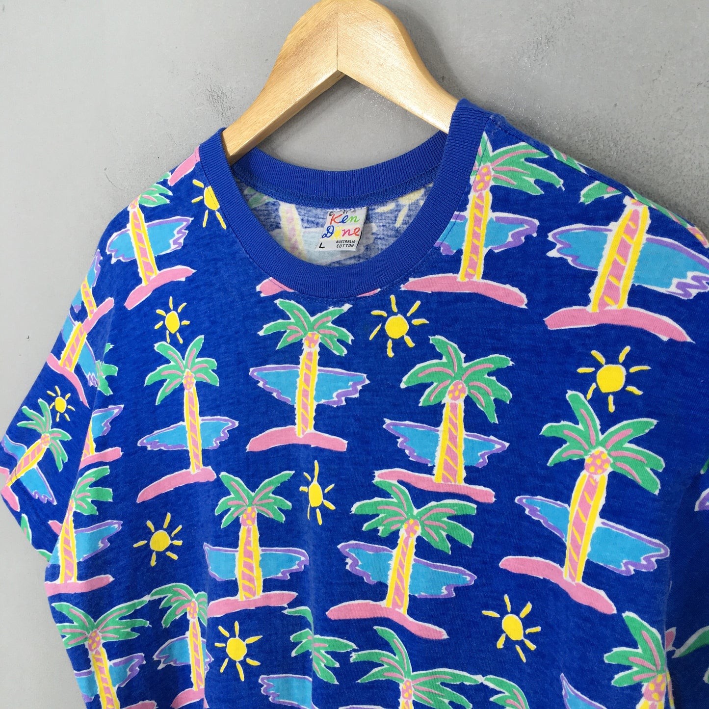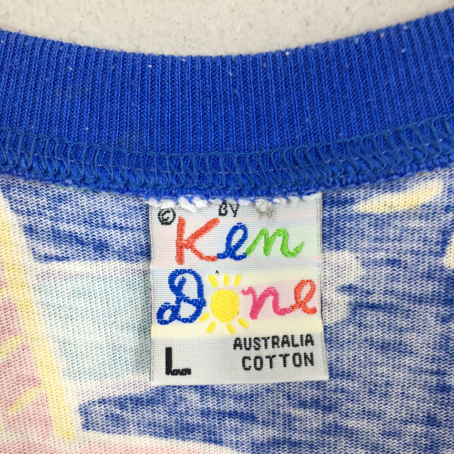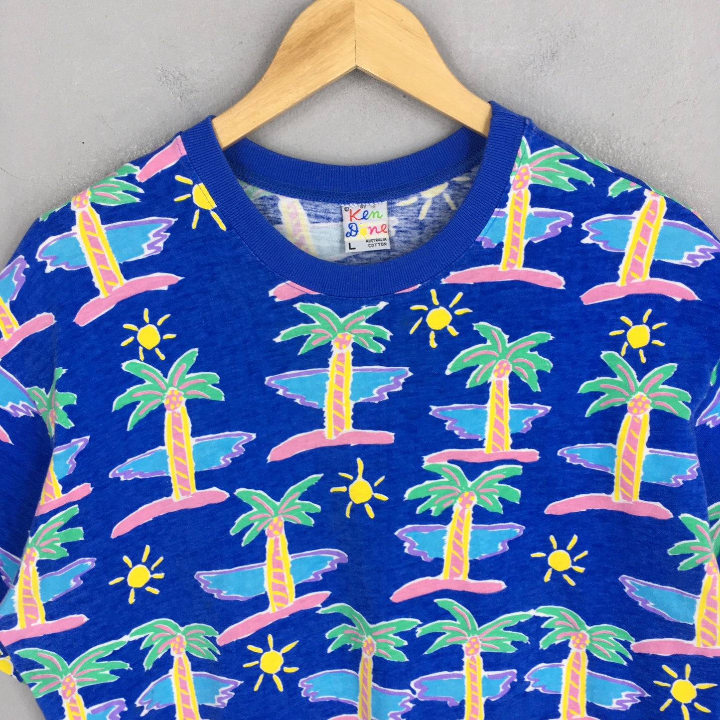 Vintage Ken Done Australia Coconut Tree All Over Prints Blue T shirt Large 90's Ken Done Down Under Australian Artist Pop Art Tees Size L