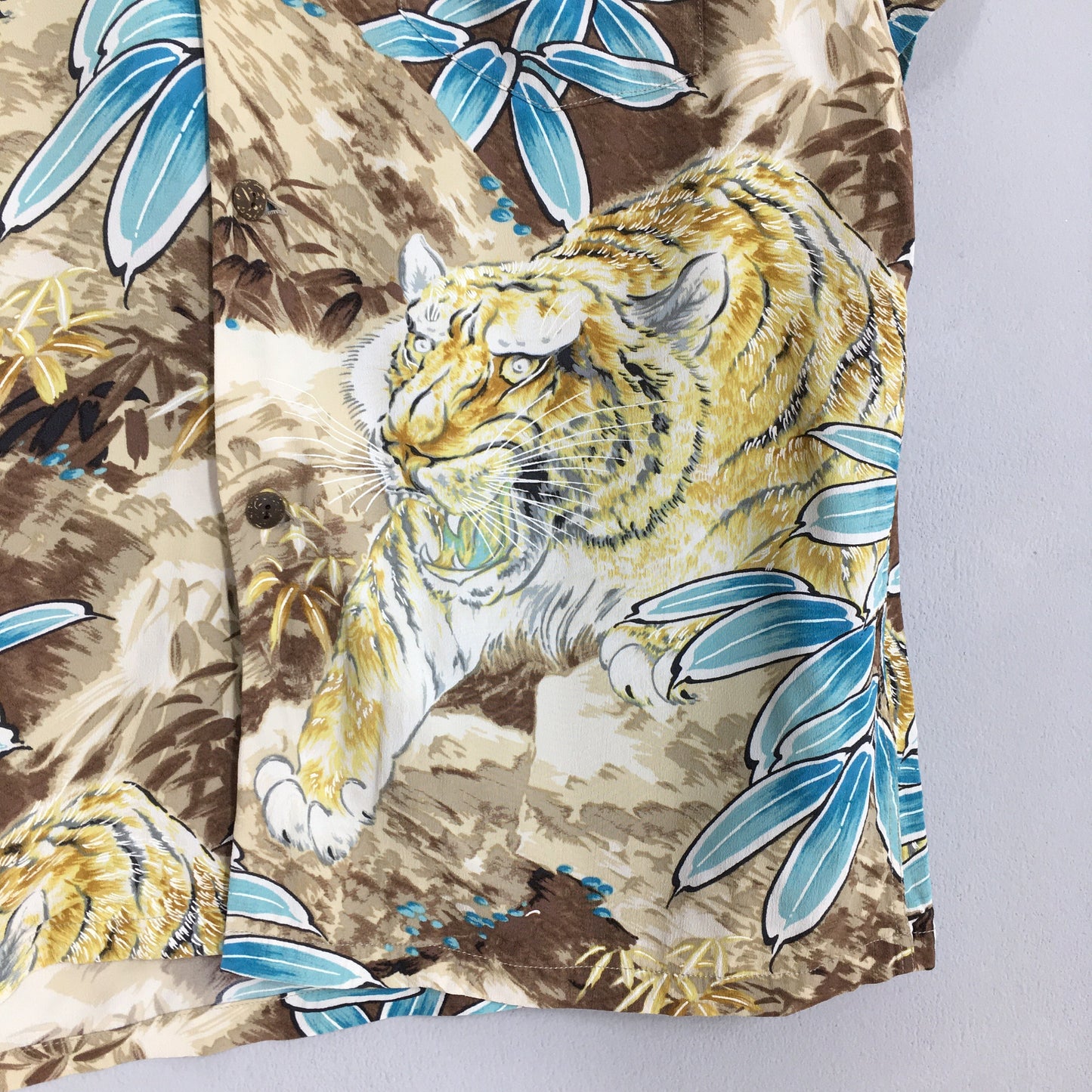 Vintage Sun Surf Jungle Tiger Roar Aloha Rayon Shirt Japanese Hawaii Beach Wear Buttondown Toyo Japan Tiger Sukajan Style Button Up Size M