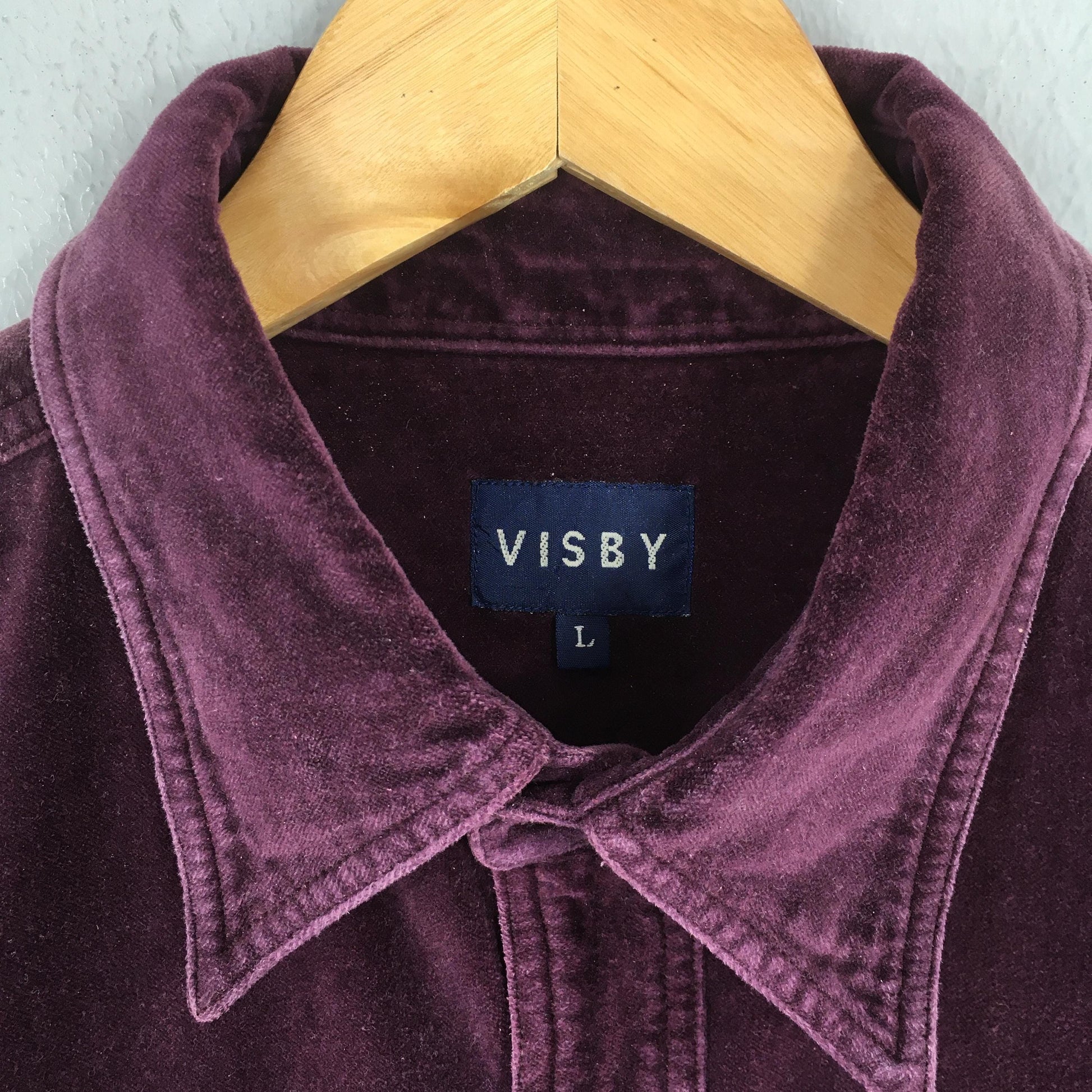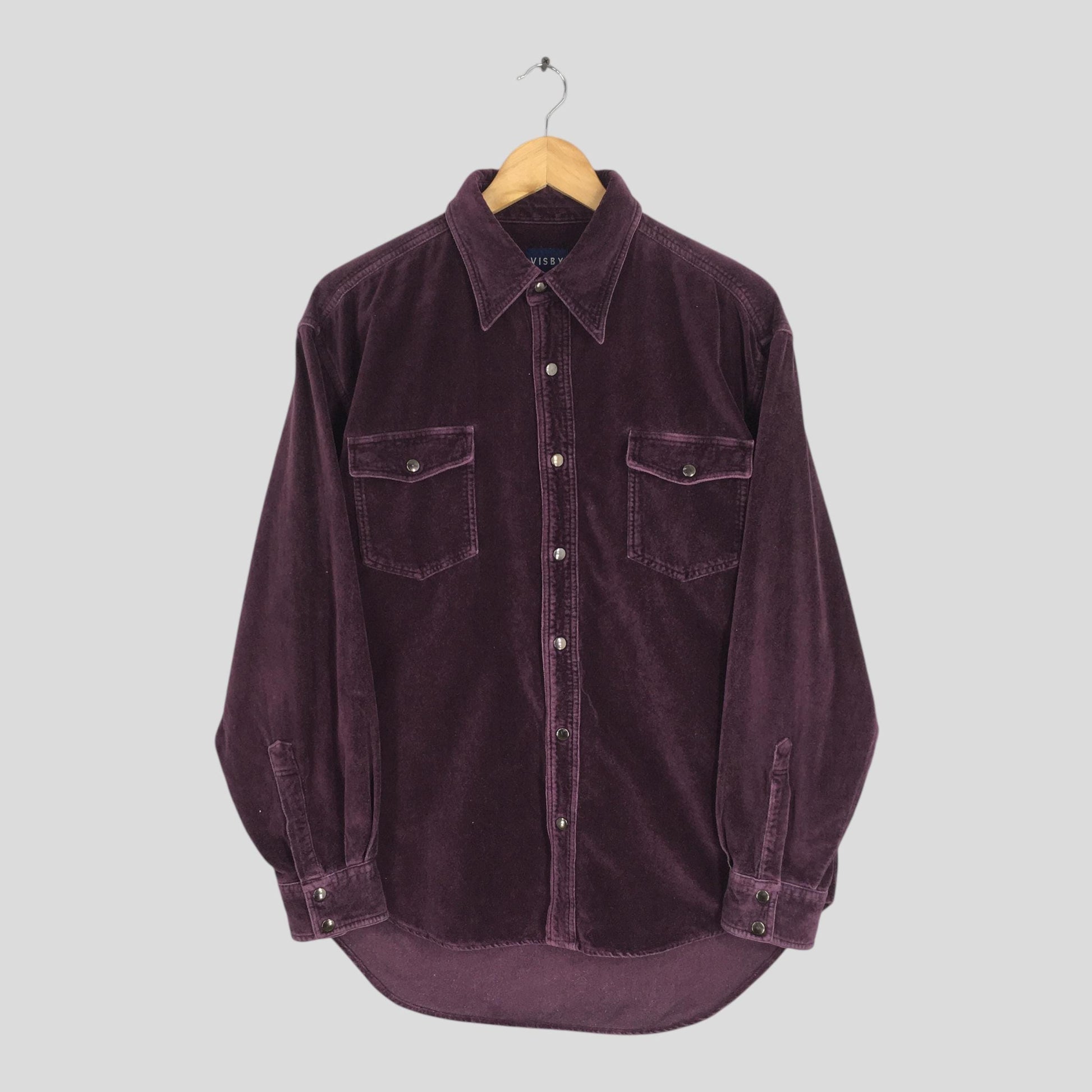 Vintage 1980s Visby Plain Purple Velvet Shirt Large Western Rustic Soft Corduroy Flannel Flannel Velour Preppy Style Button Down Size L