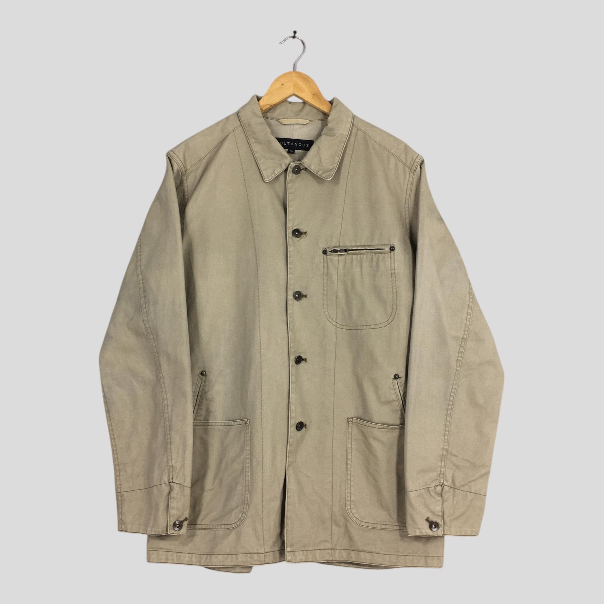 Vintage 90's Worker Frenchwork Denim Jacket Large 1980s Workwear Sanforized Jacket Chore Jeans Frenchwork Beige Casual Jacket Buttons Size L