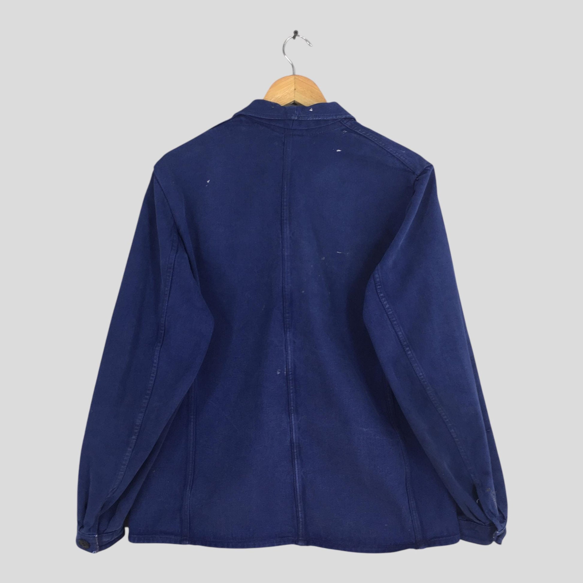 Vintage 1970's Workwear French Work Moleskin Jacket Medium Distressed Painter Frenchwork Sanforized HBT Workers Blue Indigo Denim Coat M